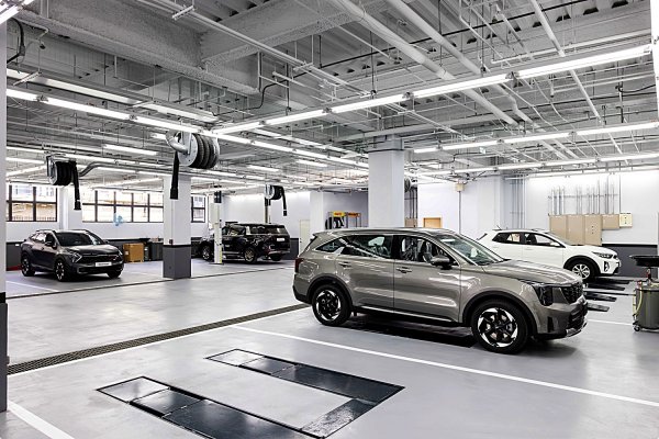 KIA森那美直營台北旗艦店整合乘用車/商用車展示與保養維修服務,服務廠除了擁有全台最大的14個專屬工位之外,更特別設立了電動車專屬的維修工作區與電池整備中心,並導入 VR 技術以高效培訓專業維修技師,全面強化售後維修量能;另外,二樓進駐全台首座「Kia Select原廠精選中古車」實體據點,最多更可展示6部車的寬敞空間,KIA Select提供原廠超過百項的嚴格檢驗。