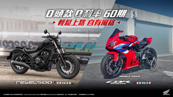 訂購CBR650R E-Clutch、Rebel500享60期 0頭款 0利率優惠