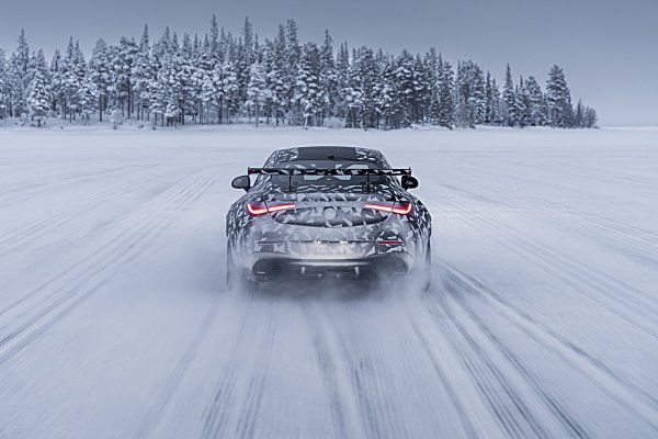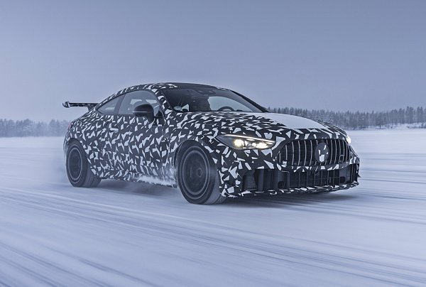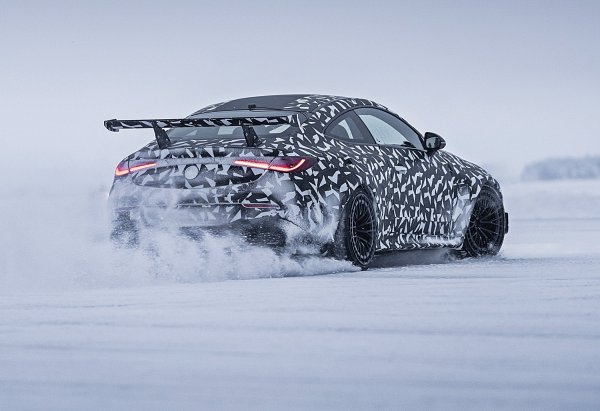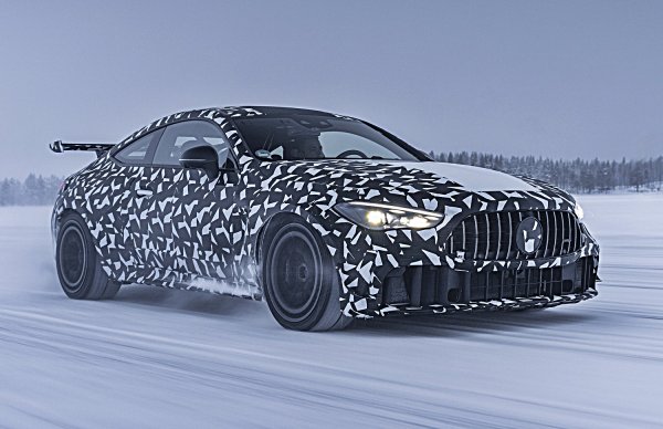 首度亮相的Mythos CLE,賓士稱此車為極限之作(Extreme),官方照顯示它正進行第二階段的道路測試,車子在瑞典北疆北極圈內的Lapland展開嚴寒測試,全車披掛冬季測試偽裝,賓士CLE 雙門轎跑車的高性能版本己有AMG六缸動力的CLE 53 Coupe,但這款看起來更為強悍,外型大量借鑑賓士黑化車型Black Series經典車型。如CLK 63及後來的C 63雙門轎跑車。