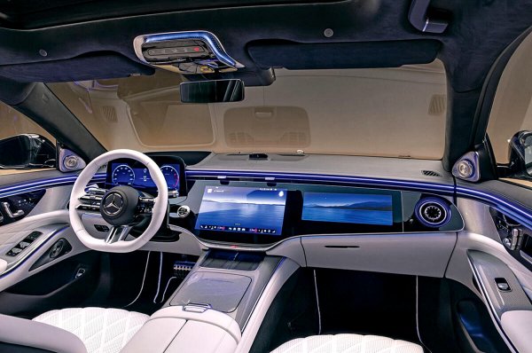 S-Class 是首款採用 Mercedes 第四代 MBUX 資訊娛樂系統的車款,該系統內建了 Microsoft Bing 與 Google Gemini 的 AI 功能,目的在於「徹底改變每個座位上車輛與乘客之間的關係」。根據賓士的說法,這款「Hey Mercedes」語音助理現在擁有短期記憶功能,並能進行類似「與朋友之間多回合對話」的對話。