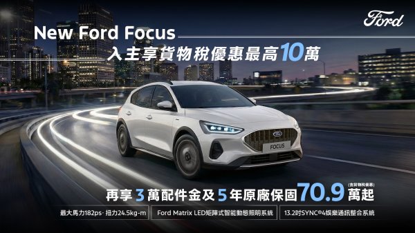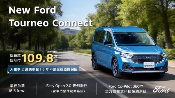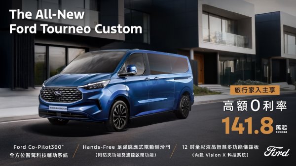 歐洲超能智駕跑旅The All-New Ford Kuga採用1.5T EcoBoost®渦輪增壓汽油引擎,經專屬調校可輸出187ps的強勁動力,帶來隨心暢快的駕馭體驗,入主享力挺價83.9萬起(含舊換新),加碼高額分期0利率及5年原廠保固;New Ford Ranger Wildtrak FRS Edition搭配全新FRS可調式裝載系統,提供靈活裝載空間,無論工作還是休閒,都能從容應對各種情境,入主即享限時回饋價154.8萬(含舊換新),及百萬0利率;New Ford Focus擁有動感外型與德規底盤調校,入主享貨物稅優惠價70.9萬起,再加碼3萬元配件金及5年原廠保固;歐洲進口正七人座New Ford Tourneo Connect福特旅玩家,享貨物稅優惠價109.8萬起,再加碼2萬元購車金、低頭款5萬、低月付8,888及6年不限里程原廠保固;歐洲首選國際商旅The All-New Ford Tourneo Custom福特旅行家,享貨物稅優惠價141.8萬元起,入主再享高額0利率。