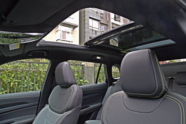 更重要的是車寬,比同級競爭車款多出10公分以上,加上後座底板完全平整化,所以三名成年人共乘在後座,肩部空間可說是同級車中最大的,如果是四人同行,後座中有寬大的扶手,和坐在大型休旅車一樣舒適開闊,後座也有空調出風口,並附USB插槽。此外,Territory擁有超大全景式電動天窗,附電動遮陽板,天窗面積之大,可充分涵蓋前後座,提供極佳的採光。此外,全車系標配感應式車窗和天窗,感應雨滴時還會自動關窗。