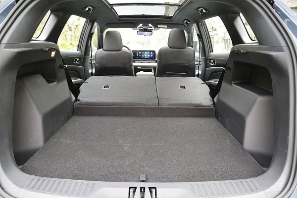 雖是中型SUV的尺碼,Territory卻具備如同大型LSUV一般的寬敞舒適,提供所謂「全席無壓宇宙艙」,2,726mm的長軸距創造前後座十分寬裕的膝部空間,而且彷如純電動車,後座底板完全平整化設計,也是同級車唯一、讓後座更顯寬敞,值得一提的Territory擁有較寬的輪距,後座具有優於同級的肩部寬度,後座乘坐三人也不會有侷促感。