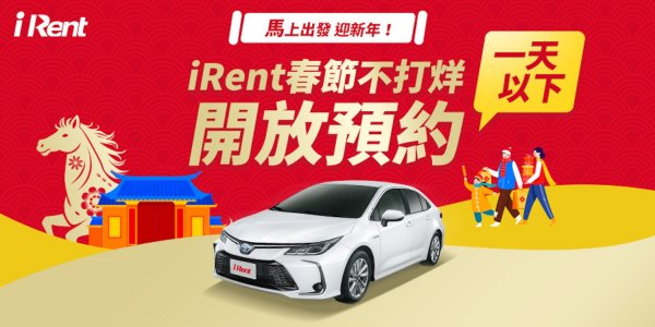 因應春節期間瞬息萬變的移動需求,「iRent共享車平台」即日起正式開放1天以下預約,提供臨時用車與短程移動更高彈性,同時,iRent 也結合節慶趣味推出多重回饋。