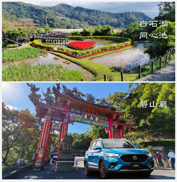 白石湖除了採草莓,也有一些同心池、夫妻樹等小景點可以拍照,也相當適合情侶、小倆口、老夫老妻驅車前往;駕駛MG ZS這類車體更靈巧的車款前往格外適合。而對面的碧山巖不僅是主祀開漳聖王的地區信仰中心,還有非常棒的展望台,可以眺望101與台北市景。因此白石湖和碧山巖通常都會是一起走走看看的行程規劃。
