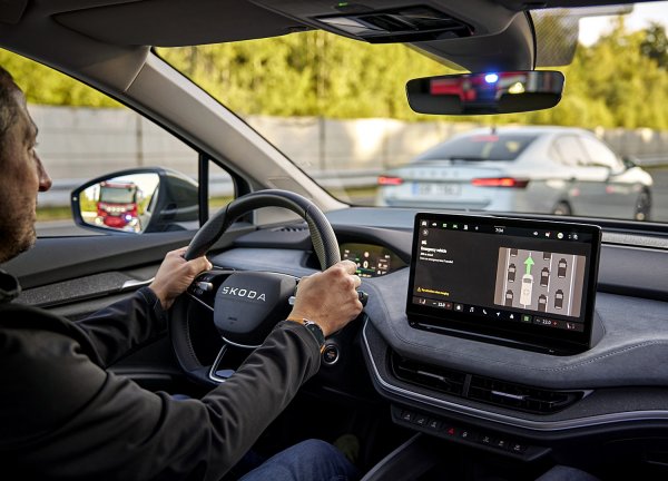 除了資訊娛樂外,交通系統現已包含與 HAAS Alert 及其 Safety Cloud® 平台合作開發的緊急車輛接近警示。啟動警示燈的緊急車輛會共享即時位置與行駛方向資料。Škoda 後端會處理這些資訊,並提供清晰的螢幕距離與方向通知,並搭配動畫引導駕駛如何組成緊急走廊。此雲端安全功能已在英國與荷蘭啟用,未來還有更多地區跟進;捷克警方將接續加入,Škoda 車輛將成為比利時首家支援此功能的車廠。